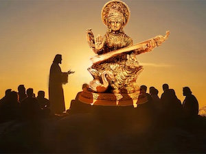 Saraswati always holds a veena!