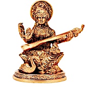 She is portrayed as a serene woman with a radiant white complexion, dressed in white attire, representing the quality of sattva (goodness). She has four arms, each holding a symbolic object: a book, a rosary, a water pot, and a musical instrument known as the veena. In Buddhism, she is venerated as well. Further Details