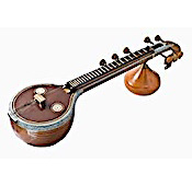 Similar to the sound of the more well-known sitar, the veena is a hollow-bodied string instrument from India. It has 24 frets, four melody strings, and three drone strings,