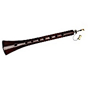 The zurna sounds a bit like the oboe. It requires high pressure to give it sound and when it does, it is almost constantly loud, high pitched, sharp, and piercing. It has even holes on the front, and one thumb hole and a range of over one octave, Zurnas are used in the folk music of many countries, especially in the Middle East, Greece and North Africa.