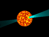 A pulsar is a highly magnetized rotating neutron star that emits beams of electromagnetic radiation out of its magnetic poles. This radiation can be observed only when a beam of emission is pointing toward Earth. Neutron stars are very dense and have short, regular rotational periods. This produces a very precise interval between pulses that ranges from milliseconds to seconds for an individual pulsar.