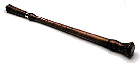 This reed instrument is based on a stone figure found in Glastonbury, England, an ancient Iron Age lake village. The area was also a place of worship of Druids and an object of pilgrimages in the Middle Ages. The Glastonbury pipe is based on the alto cornamuse and like the alto cornamuse is in the key of F. It was designed primarily for folk music with its large flared resonator giving the pipe a full rounded sound.
