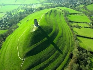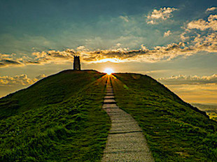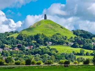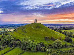 The Glastonbury Tor is a hill near Glastonbury in the English county of Somerset, topped by the roofless St Michael's Tower. The Tor is mentioned in Celtic mythology, particularly in myths linked to King Arthur, and has several other enduring mythological and spiritual associations.
